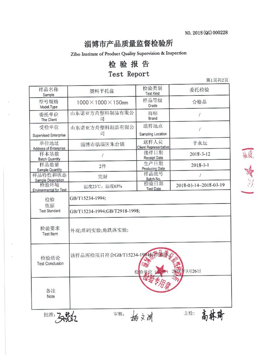 (塑料托盤(pán)質(zhì)檢報(bào)告)淄博市產(chǎn)品質(zhì)量監(jiān)督檢驗(yàn)所